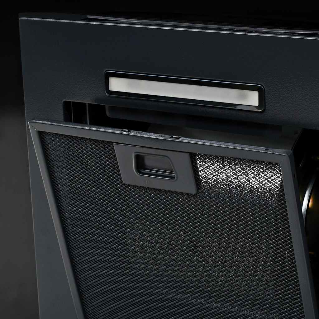 De afzuigkap is uitgerust met een 3-laags wasbaar aluminium vetfilter om de binnenkant van de afzuigkap en de uitlaatpijp tegen vet te beschermen. De ingebouwde, vingeraanraakgevoelige bedieningselementen, het LCD-display en de LED-lampjes maken de afzuigkap gemakkelijk te gebruiken en koken eenvoudiger. De kap heeft 3 variabele snelheden om ervoor te zorgen dat je volledige controle hebt over de extractiesnelheid. Een koolstoffilter dat de lucht helpt zuiveren en de gereinigde lucht terug in de keuken zal brengen, is ook inbegrepen. De meegeleverde uitlaatpijp leidt de afgezogen kookgeuren naar buiten. De afzuigkap is eenvoudig te monteren.
